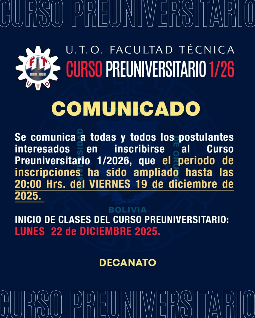 Es una modalidad de admisión para nuevos postulantes, diseñada para fortalecer las bases académicas de los bachilleres que aspiran a ingresar a la Facultad Técnica.