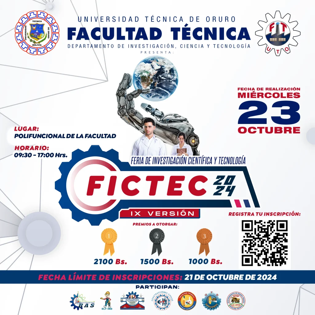La «FERIA DE INVESTIGACIÓN CIENCIA Y TECNOLOGÍA» es un evento organizado por la Facultad Técnica de la Universidad Técnica de Oruro (UTO), que tiene como objetivo visibilizar, valorar y socializar la investigación realizada por docentes, estudiantes y profesionales de la universidad. La facultad organiza este evento periódicamente, y en ocasiones anteriores se ha realizado de forma virtual, permitiendo la participación de investigadores de las diferentes áreas de la UTO.